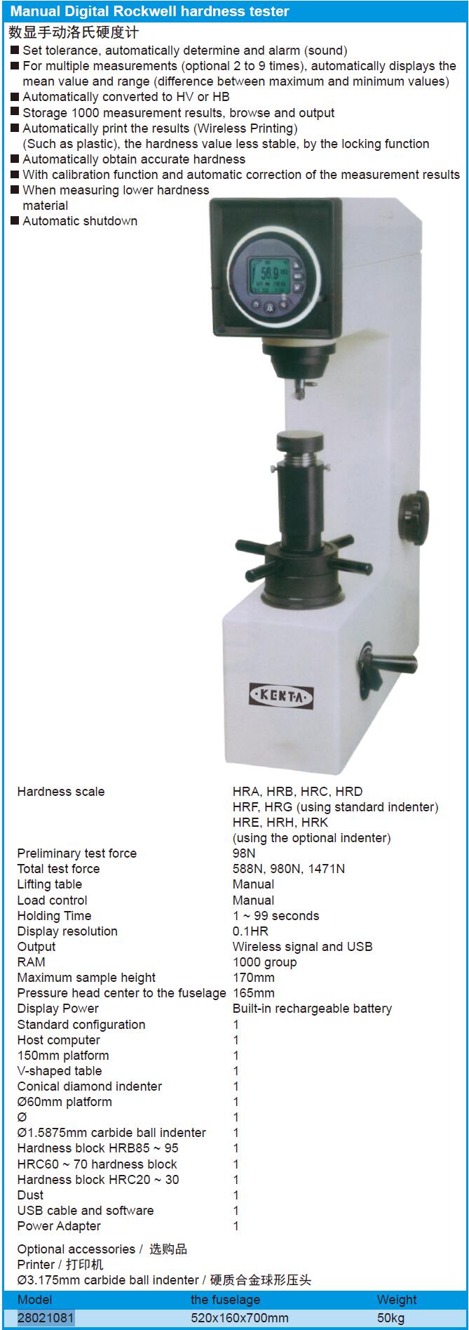 英文名称:  Manual Dingital Rockwell hardness tester