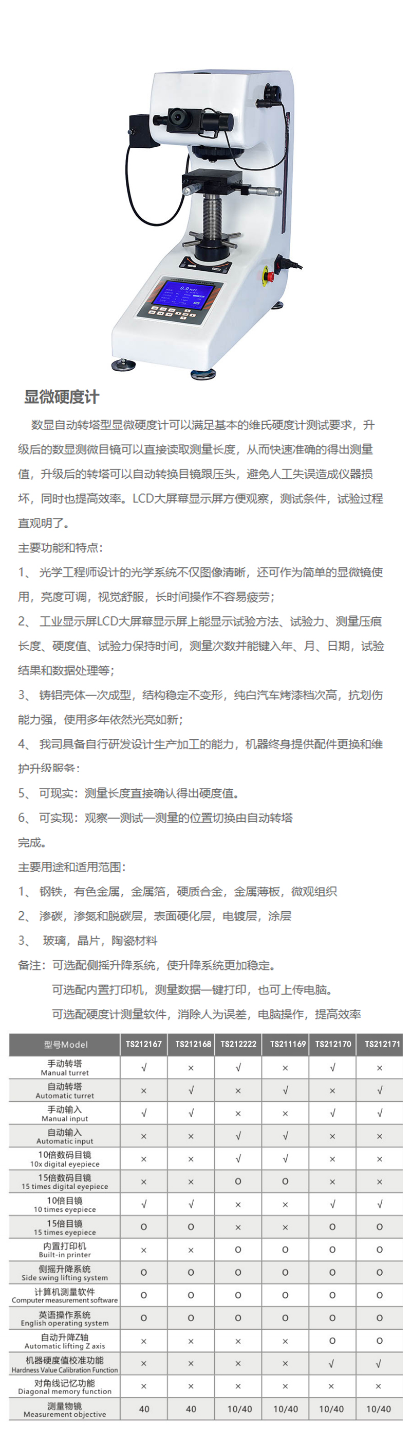 规格:  硬度测量范围5~3000HV 制造商型号:  TS212171