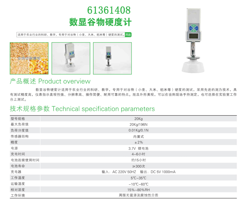 K04095 6136 1408 内置式 20kg/196N 内置传感器 ±2% 谷物硬度计 3400.00