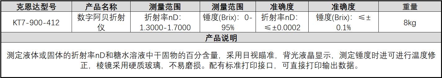规格:  nD:1.3000~1.7000 制造商型号:  KT7-900-412