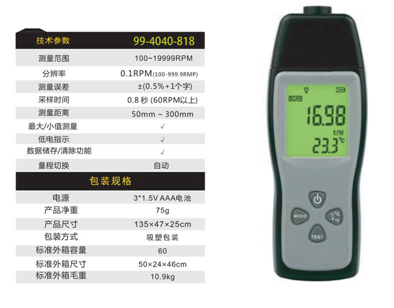 C70282 99-4040-818 100~19999PRM ±(0.5%+1个字) 数显转速仪 257.40