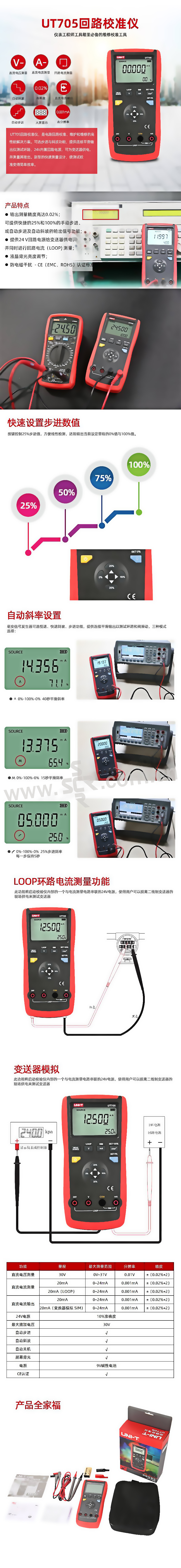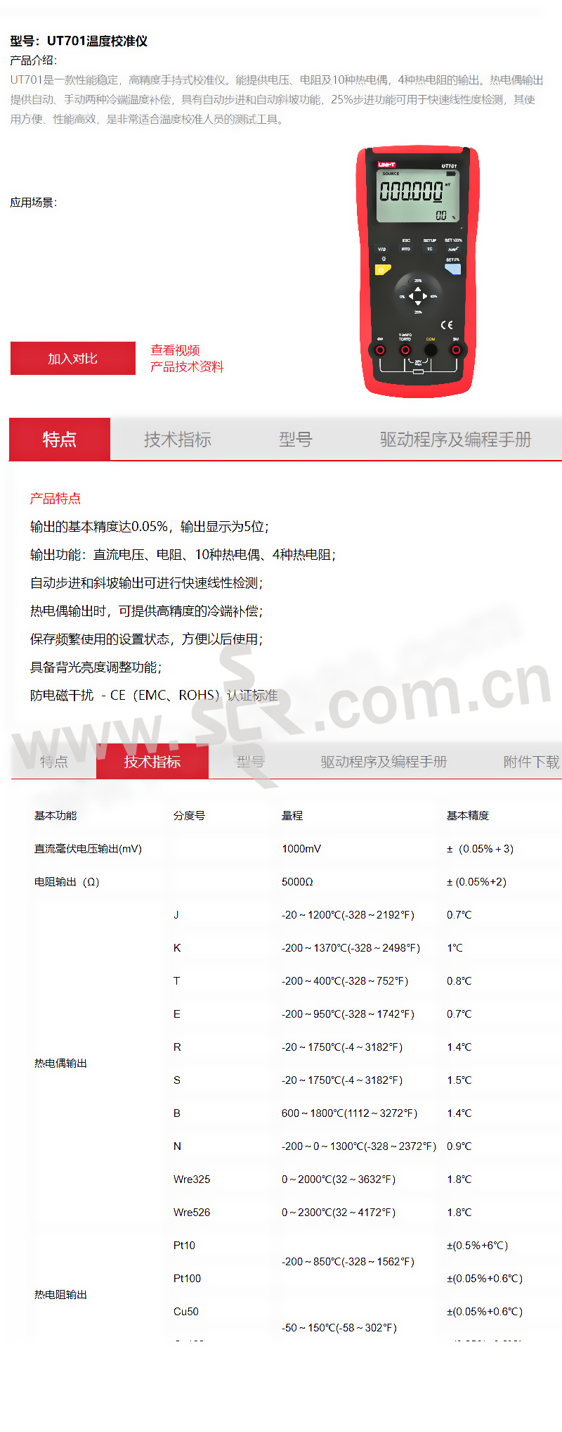 ·输出的基本精度达0.05%,输出显示为5位;·输出功能:直流电压、电阻、10种热电偶、4种热电阻;·自动步进和斜坡输出可进行快速线性检测;·热电偶输出时,可提供高精度的冷端补偿;·保存频繁使用的设置状态,方便以后使用;·具备背光亮度调整功能;