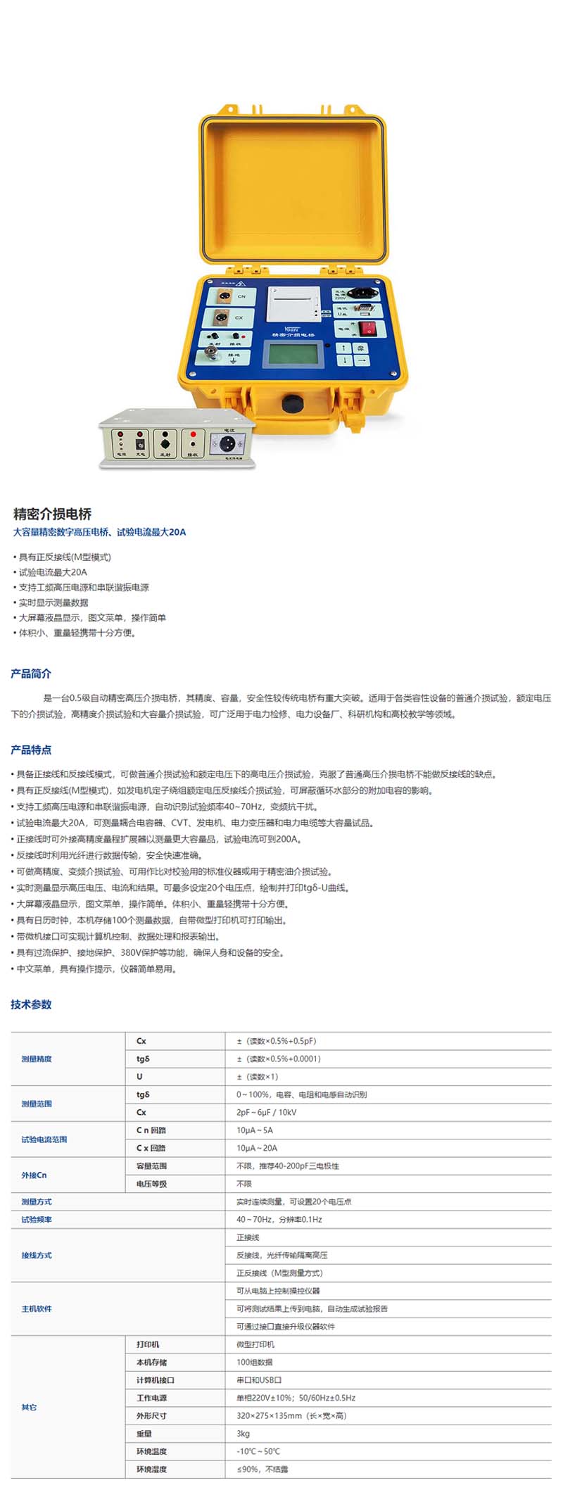 ·具备正接线和反接线模式,可做普通介损试验和额定电压下的高电压介损试验,克服了普通高压介损电桥不能做反接线的缺点。