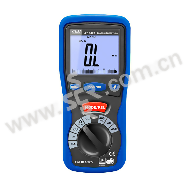 ·4根Kelvin线测量模式,精确性更高 4000位数字液晶显示屏,并有背光设置,读数更加清晰明了 测试电流为200mA时,分辨率可达0.1mΩ 相对调零功能 数据保持 最大/最小值保持 所有量程均有过载保护,操作更加安全 低电量提示,能及时提醒使用者更换电池 短路和二极管测试·低电阻测量 · 量程:400mΩ,4Ω,40Ω ·分辨率:0.1mΩ,1mΩ,0.01Ω·精确度:±(1.0%+10d),±(1.0%+5d),±(1.0%+5d) ·电流:200