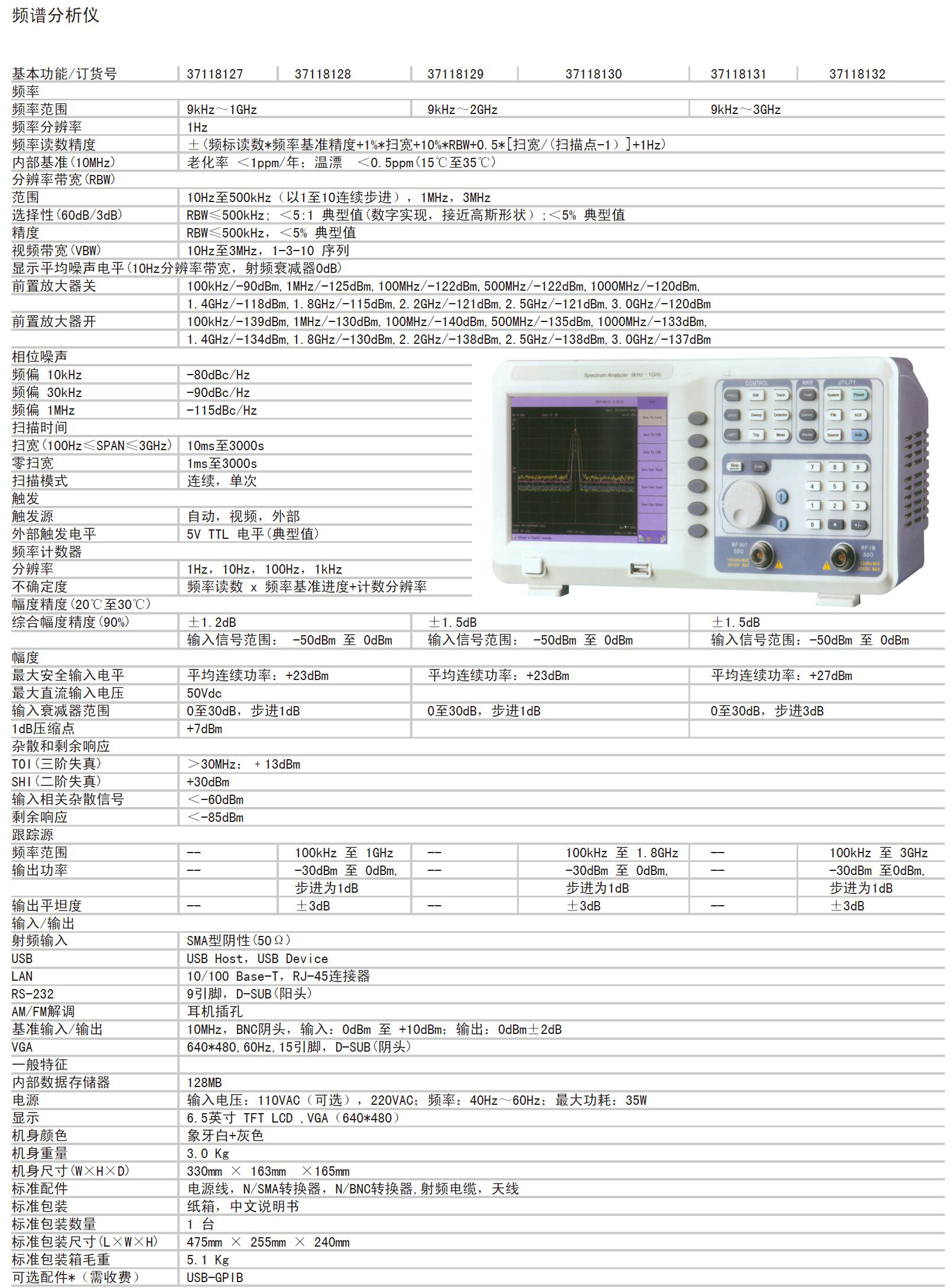 100kHz/-90dBm,1MHz/-125dBm,100MHz/-122dBm,500MHz/-122dBm,1000MHz/-120dBm,1.4GHz/-118dBm,1.8GHz/-115dBm,2.2GHz/-121dBm,2.5GHz/-121dBm,3.0GHz/-120dBm