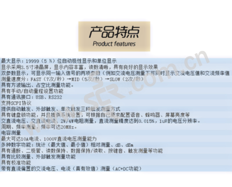 ·送上位机软件·显示位数5-1/2位·提供自动、外部、单次触发三种触发测量方式·可选择手动或自动量程·数据内存存储功能和读取功能,方便查看数据信息·具有读数保持功能·内置温度传感器进行冷端补偿,支持自动、手动补偿