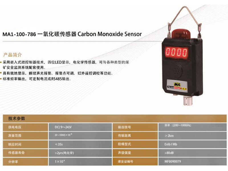 ·采用嵌入式微控制器技术,四位LED显示,电化学传感器,可与各种类型的煤矿安全监测系统配套使用。 ·具有就地显示、断续声光报酱、报警点可调、红外遥控调校等功能。·标准频率输出,可定制电流或RS485输出。