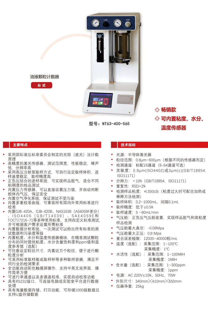 数显台式油液颗粒计数器可内置粘度水分温度传感器