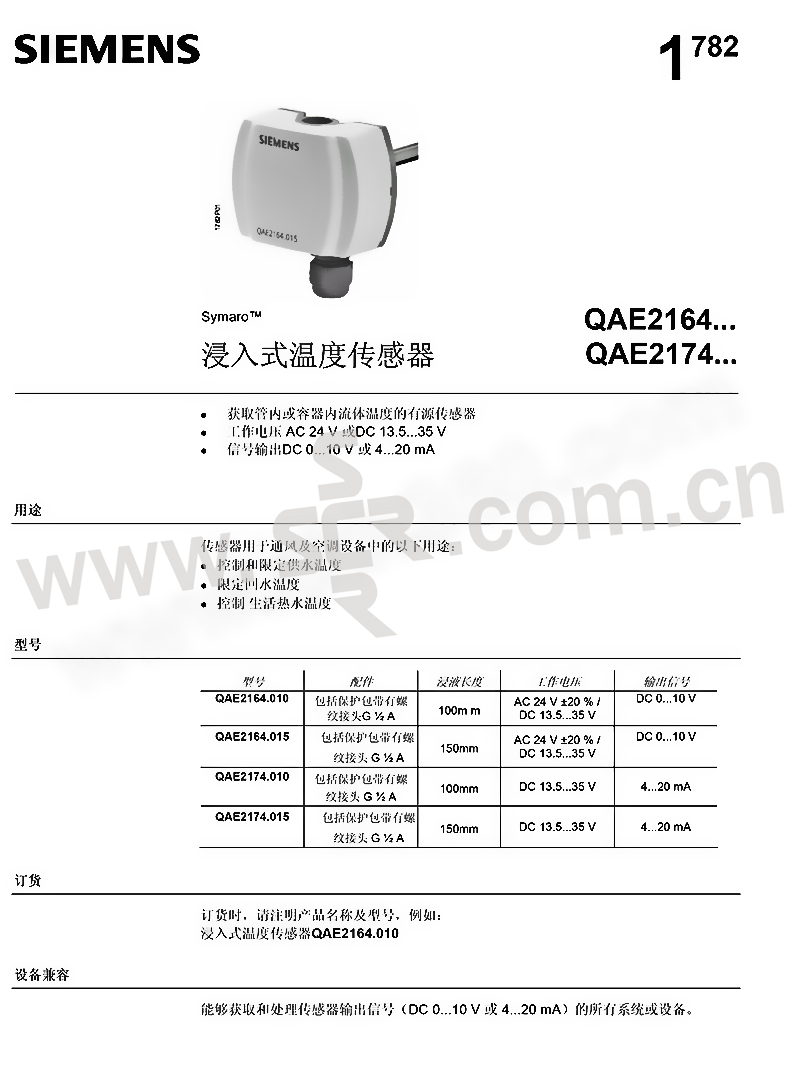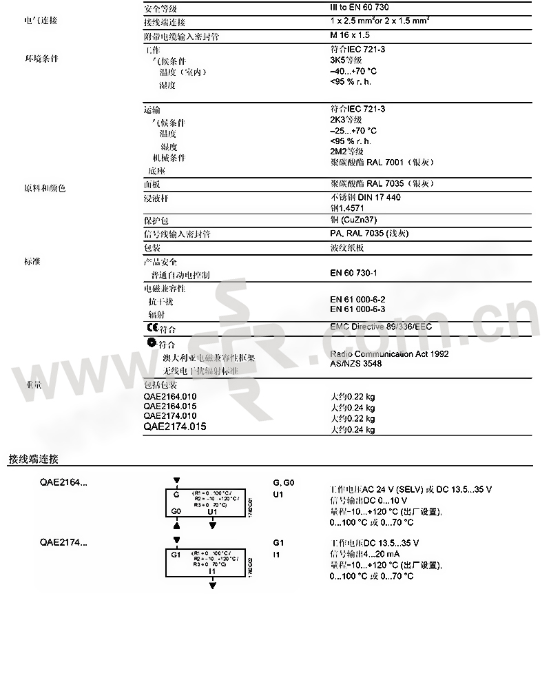 SIEMENS/西门子 温湿度传感器 QAE2164.010 1个