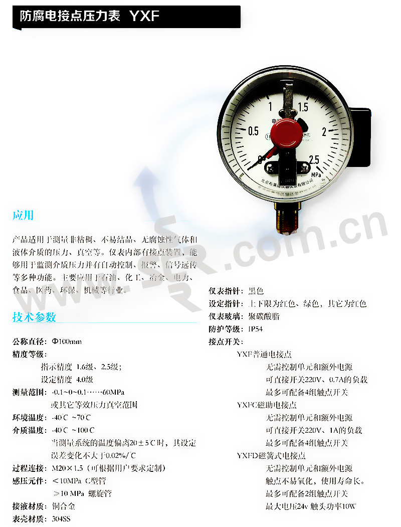 ·隔膜式系列压力表(配接化学密封),是由一个不同类型的通用压力表与一个隔膜隔离体配接而成的。·在通用型压力表与隔膜隔离体之间还可以配接具有特定 要求的连接体。·通过这种配接,使一般通用型的压力表,增加了对特殊腐蚀要求、温度高、粘度大或含有 固态浮游物、易凝固介质压力的测量性能。
