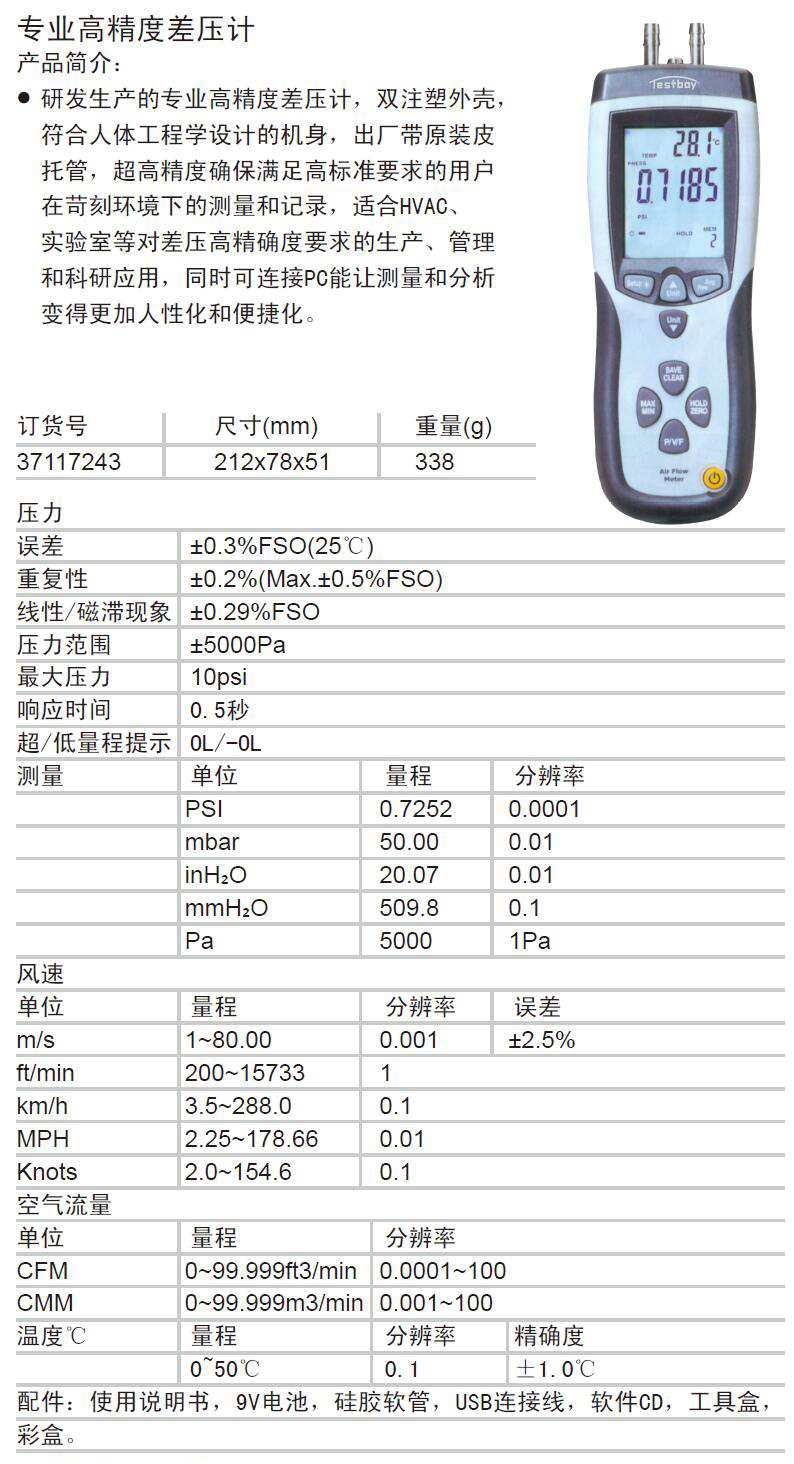 A51928 37117243 ±5000Pa 0.1 212×78×51mm ±0.3%FSO(25℃) ±0.2%(Max.±0.5%FSO) ±0.29%FSO ±5000Pa 10psi 0.5秒 OL/-OL PSI mbar inH₂O mmH₂O Pa 0.7252 50.00 20.07 509.8 5000 0.0001 0.01 0.01 0.1 1Pa m/s ft/min km/h MPH Knots 1~80.00 200~15733 3.5~288.0 2.25~178.66 2.0~154.6 0.001 1 0.1 0.01 0.1 ±2.5% CFM,CMM 0~99.999ft3/min,0~99.999m3/min 0.0001~100,0.001~100 7986.35