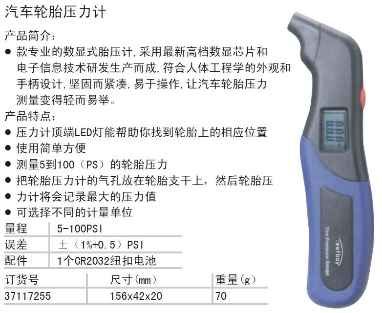 ·一款专业的数显式胎压计,采用最新高档数显芯片和电子信息技术研发生产而成,符合人体工程学的外观和手柄设计,坚固而紧凑,易于操作,让汽车轮胎压力测量变得轻而易举。