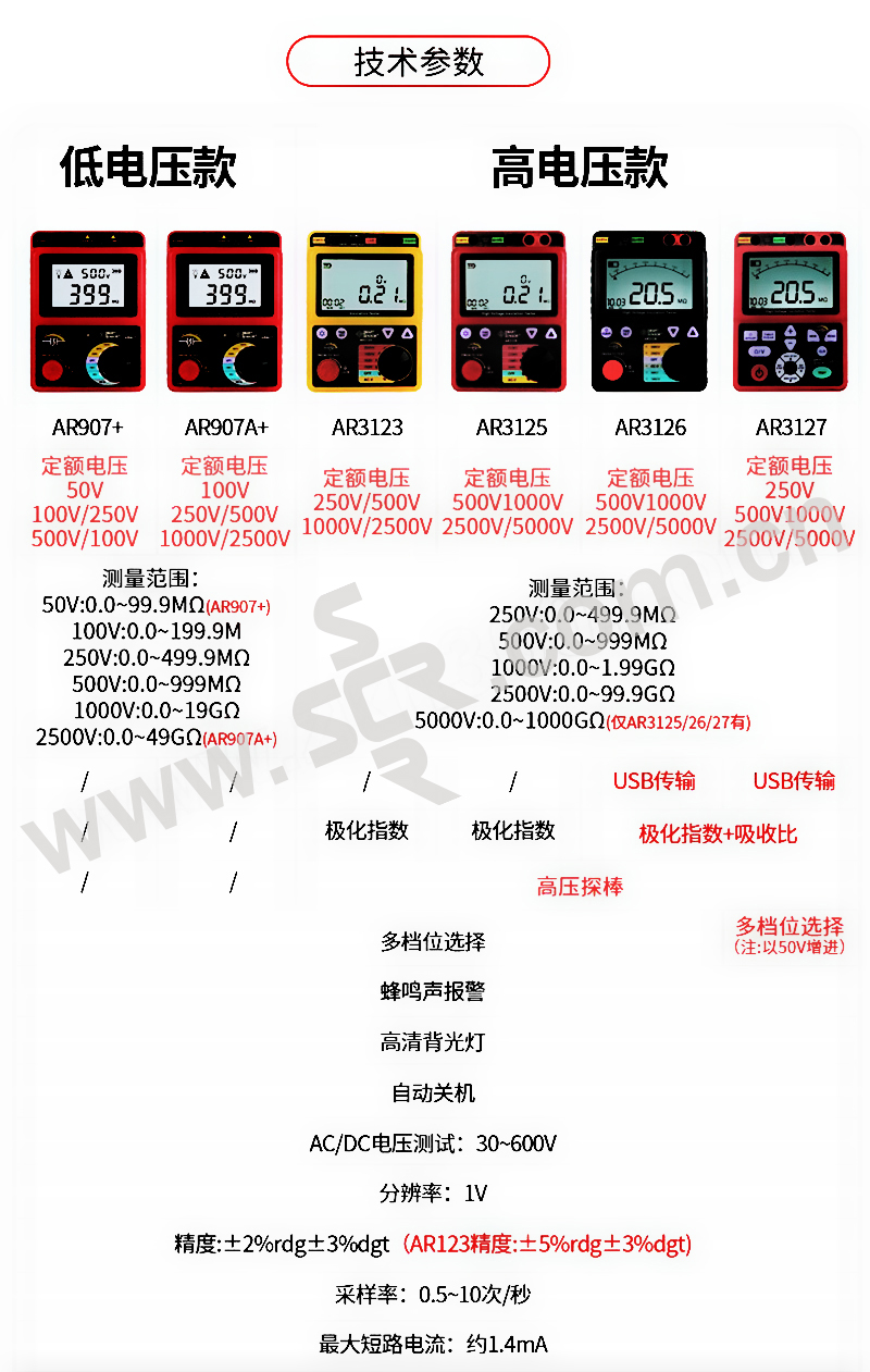 SMART SENSOR/希玛仪表 数字兆欧表/电子摇表/绝缘电阻测试仪 AR907+ 1000V 1台