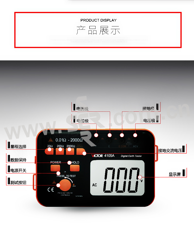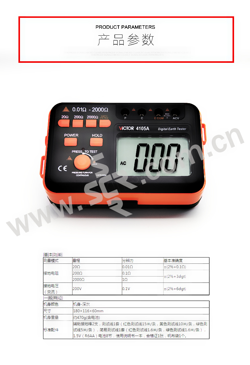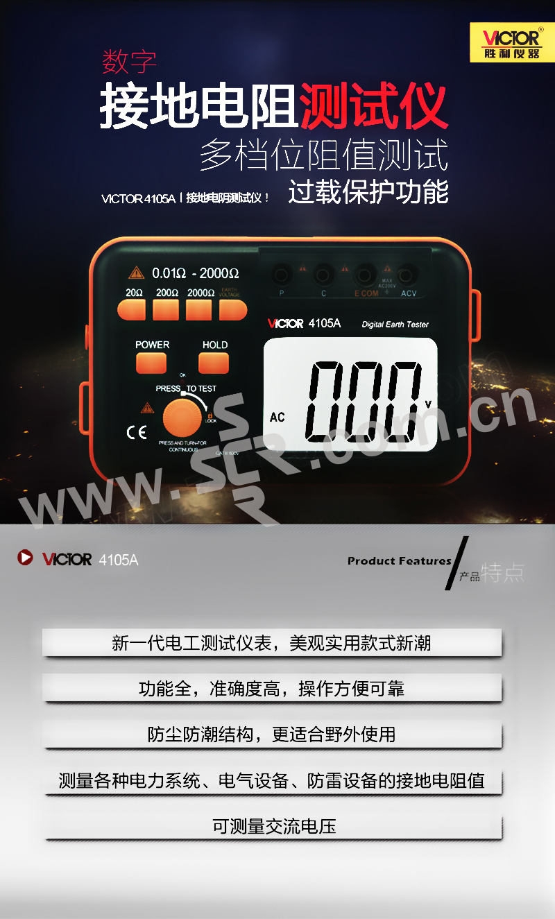 VICTOR/胜利 接地电阻测试仪 VICTOR 4105A 接地交流电压200V 1台