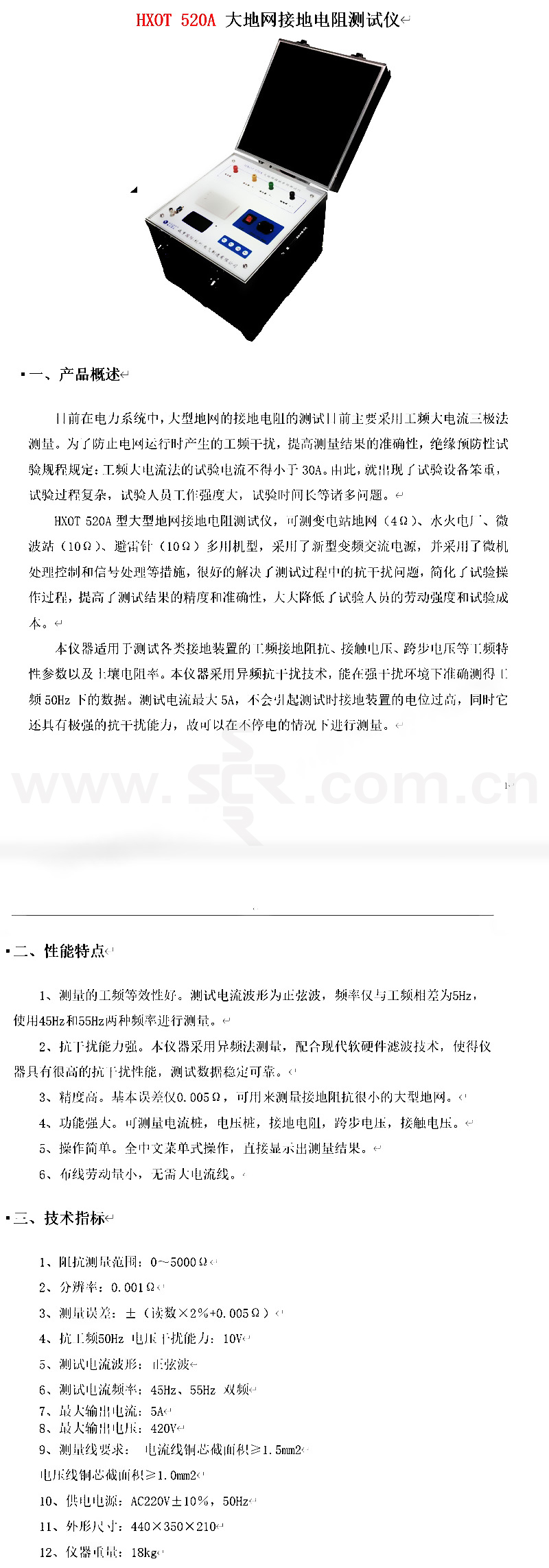 HXOT/豪克斯特 大地网接地电阻测试仪 HXOT520A 阻抗测量范围0~5000Ω 1套