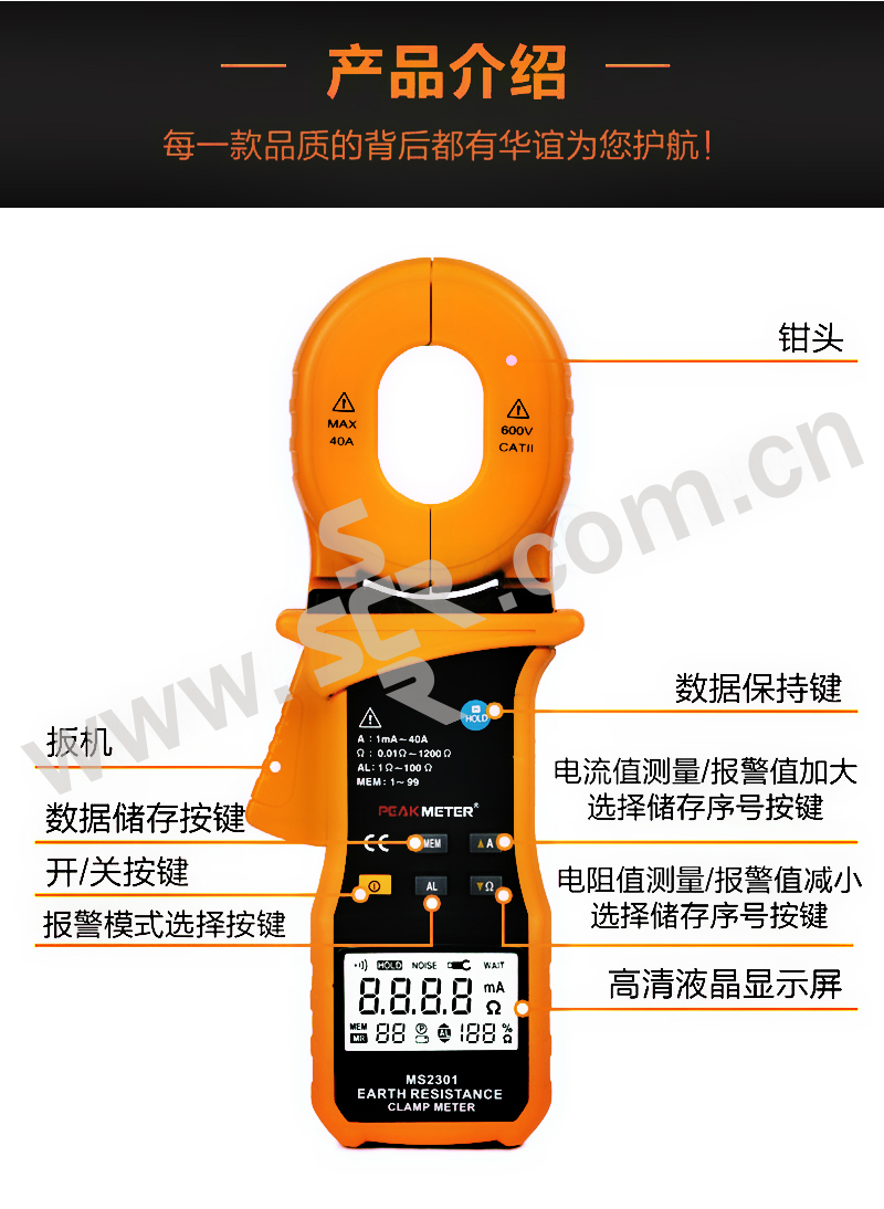 ·非接触式电阻测量,精密钳头40A电流