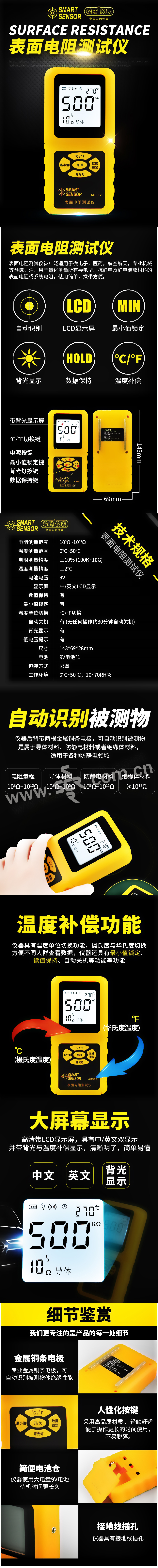 SMART SENSOR/希玛仪表 表面电阻测试仪 AS982 10^3~10^12Ω 1台