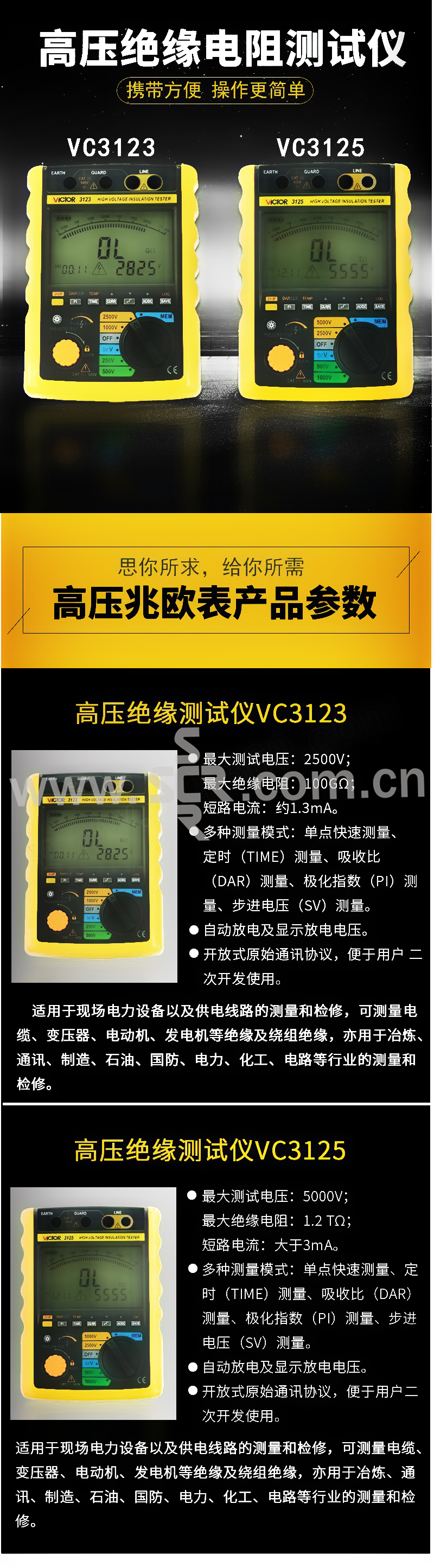 ·测试电压:2500V·绝缘电阻:100GΩ·短路电流:约1.3mA·多种测量模式:单点快速测量、定时测量、吸收比测量、极化指数测量、步进电压测量。·自动放电及显示放电电压。·开放式原始通讯协议,便于用户二次开发使用。