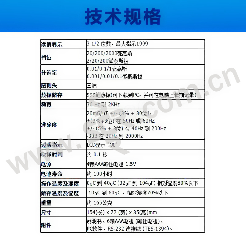 ·提供一个快速、可靠、容易的方法来量测包含电源线、家电及工业设备的电磁场辐射等级。·具有物超所值、携带方便等特点,并可量测不同频宽的电磁场辐射。·可同时显示微泰斯拉、毫高斯二种单位。·数据锁定、最大/最小值锁定功能。·数据具有记忆及读取功能,2000笔数据。(1393)·手动数据记忆99组。(1394S)·自动数据记忆microSD卡 4GB。 (1394S)·PC联机功能。(1394S)