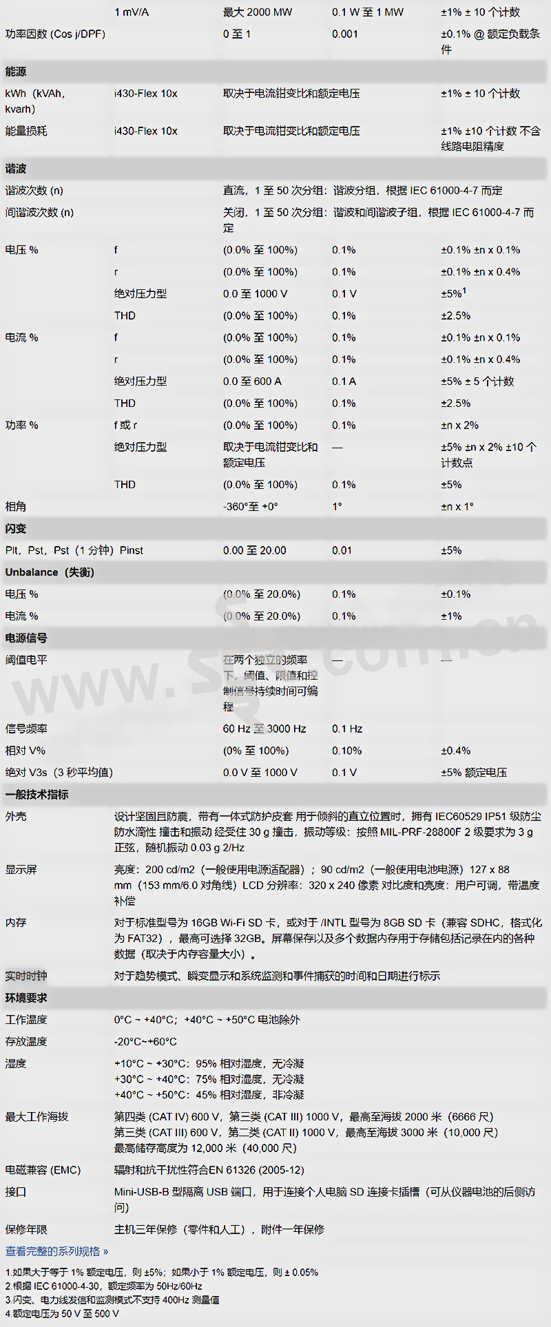 ·电能量损失分析器: 通过对标准的有功和无功功率测量、不平衡和谐波功率进行量化,以确定电能损失造成的财务成本。 ·实时故障排除: 使用光标和缩放工具分析趋势。 ·业内高安全级别: 进户线额定使用 600 V CAT IV/1000 V CAT III。 ·测量所有三相和中性线: 内置 4 个柔性电流探头,增强的细柔性设计以适合最紧密的位置。 ·自动趋势分析: 每次测量都会自动记录,无需进行任何设置。 ·系统监测器: 根据 EN50160 电能质量标准,在一
