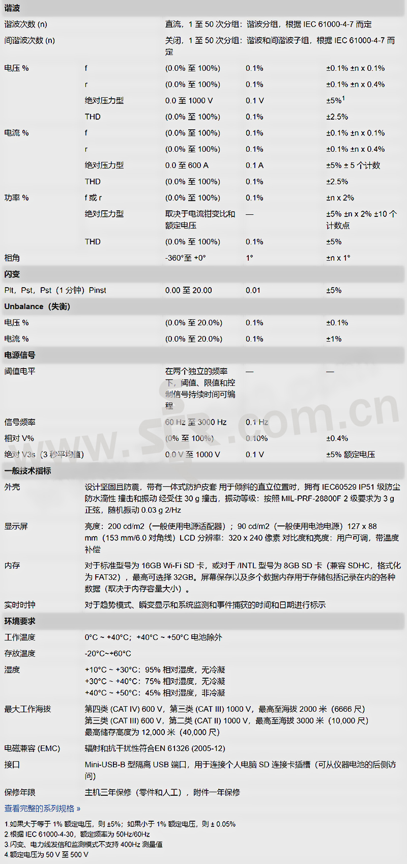 ·功率逆变器效率: 同时测量电力电子系统的交流输出功率和直流输入功率(使用可选的直流电流钳)。 ·电参数波形数据捕获: 捕获快速变化的 RMS 数据,显示半周期和波形来描述电气系统动态特性(发电机起动、UPS 切换等等)。 ·电能量损失分析器: 通过对标准的有功和无功功率测量、不平衡和谐波功率进行量化,以确定电能损失造成的财务成本。 ·实时故障排除: 使用光标和缩放工具分析趋势。 ·业内高安全级别: 进户线额定使用 600 V CAT IV/1000 V CAT I