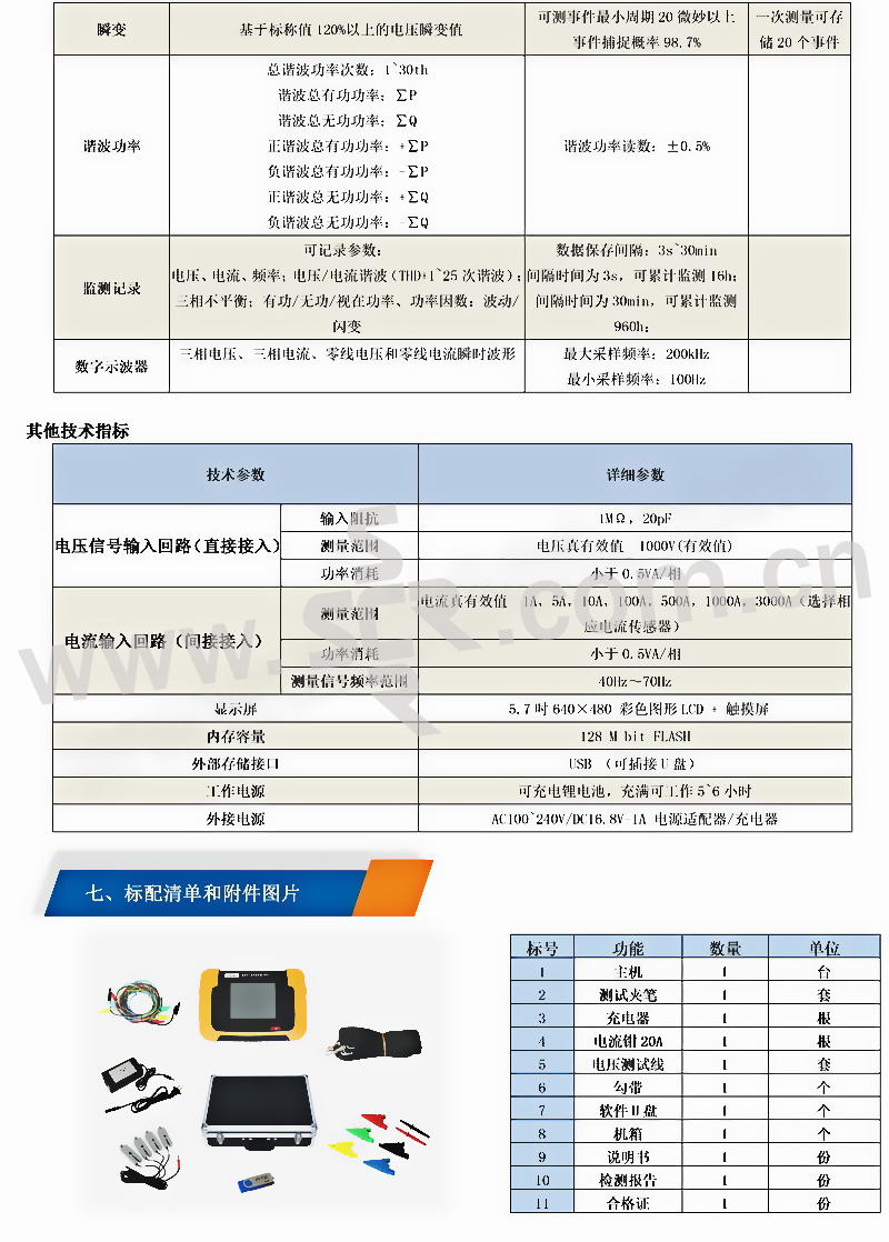 ·配备了大容量的存储器,能够对电网运行进行长期的数据采集检测,配备PC应用软件,把采集的数据上传至计算机,便于进行各种分析