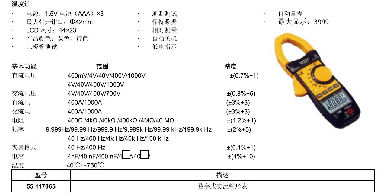 B14264 55 117063 数字式交流钳形表 3889.50