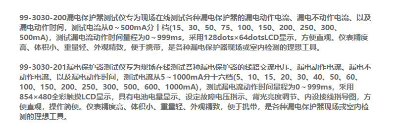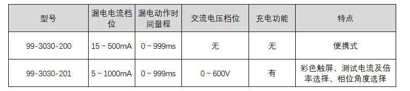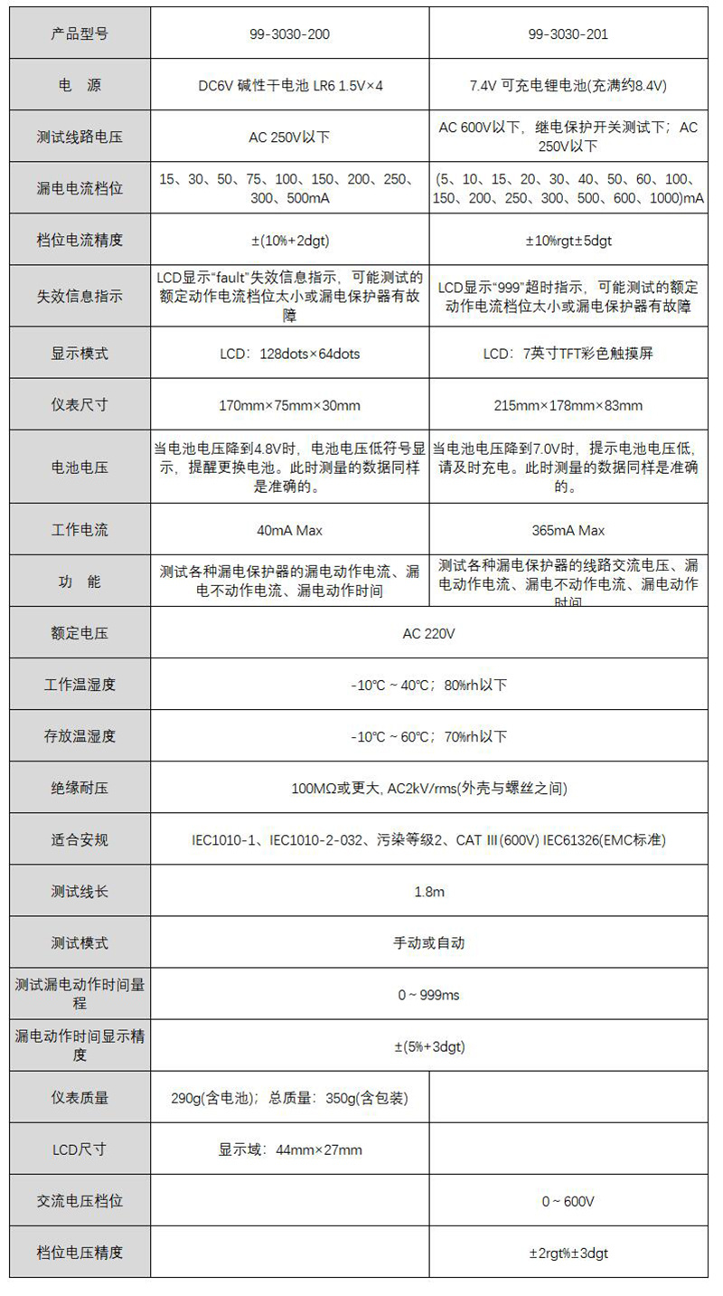 订货号 制造商型号 额定动作电流 故障状态设定 动作时间 测试电流量程 描述 测试线长 额定电压 失效信息指示 交流电压档位 工作湿温度 档位电流精度 价格 购物车