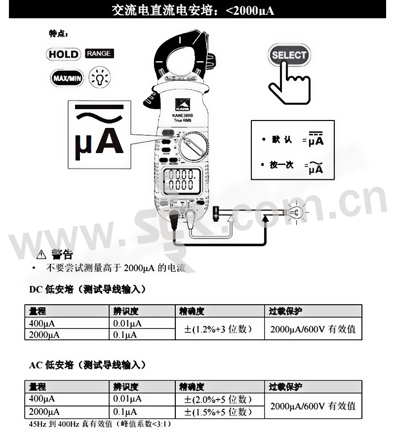 KANE/英国凯恩 漏电流真有效值钳表 KANE-389B 可测量0.01μA级别电流 1台