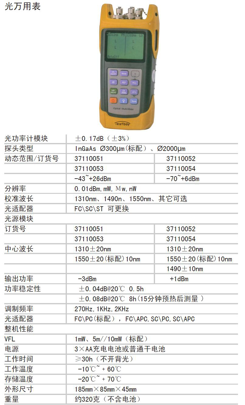 1310±20nm 1550±20(标配)10nm 1490±10nm
