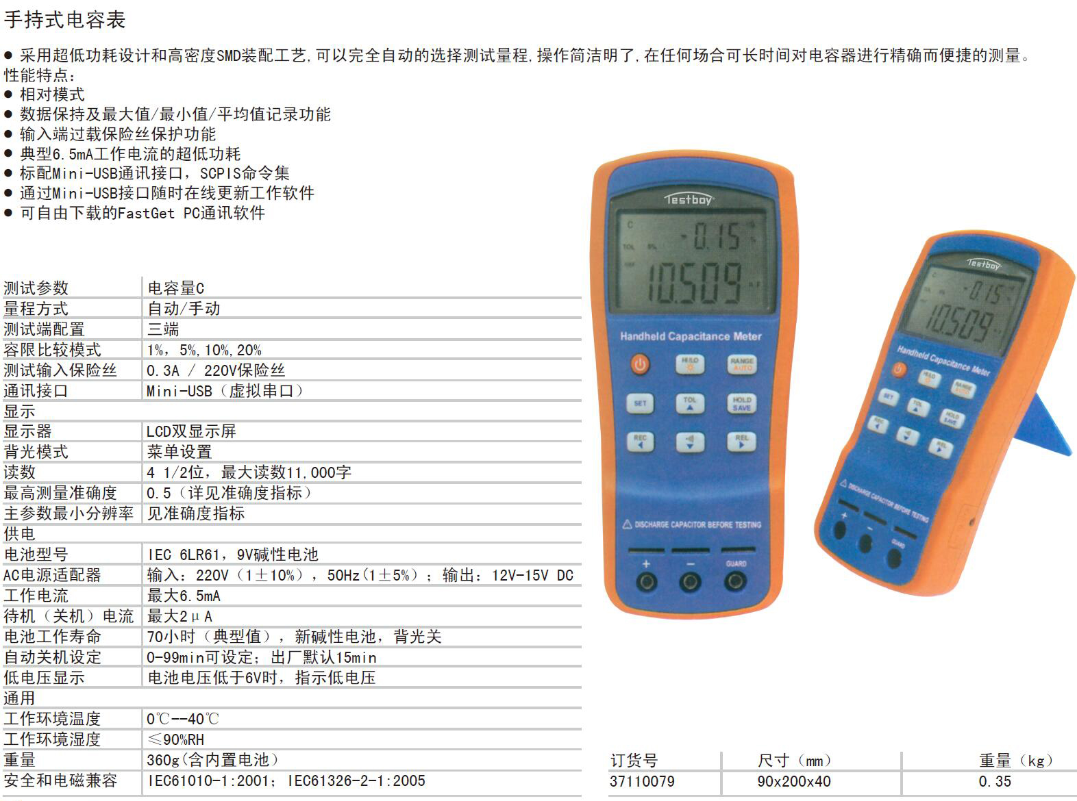 ·采用超低功耗设计和高密度SMD装配工艺,可以完全自动的选择测试量程,操作简洁明了,在任何场合可长时间对电容器进行精确而便捷的测量。