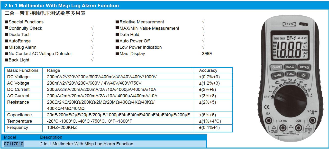 二合一带非接触电压测试数字多用表 007117010 10Hz~200kHz 1把