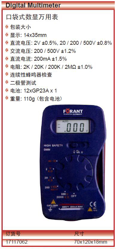 2V ±0.5%, 20 / 200 / 500V ±0.8%