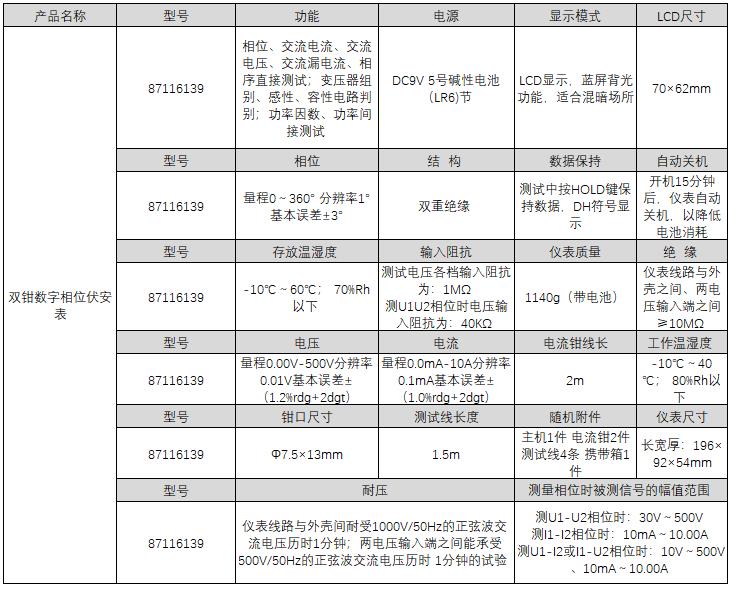 测U1-U2相位时:30V~500V 测I1-I2相位时:10mA~10.00A 测U1-I2或I1-U2相位时:10V~500V、10mA~10.00A