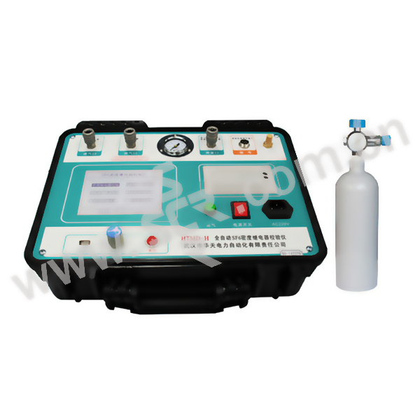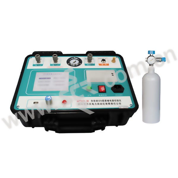 ·密度继电器校验仪采用32位微处理器和TI公司的高速信号处理芯片进行检测与控制,集成程度高。机电一体化设计,精度高,重复性好,可靠性高·配置了大屏幕中文液晶屏和旋转鼠标(一键飞梭)人机接口,操作简单、界面美观,所有参数及状态一目了然·自动完成压力测量和20℃值转换,从而完成了压力、温度间的动态自动补偿。并显示被测环境温度下的压力20℃时环境温度下的压力、环境温度。彻底解决了SF6气体密度继电器现场校验难的问题·所有测试过程自动由仪器完成,不用人工干预,避免了繁琐的人工气路调节