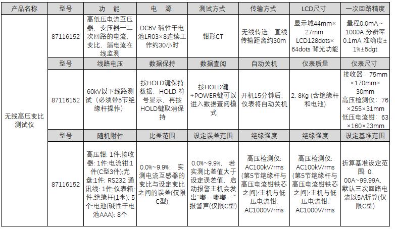 接收器:75mm×170mm×30mm 高压检测仪:76×255×31mm 低压电流钳:63×160×23mm
