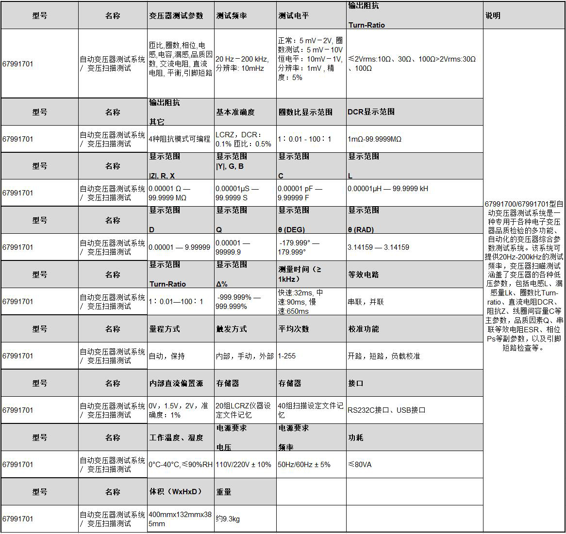 自动变压器测试系统 / 变压扫描测试