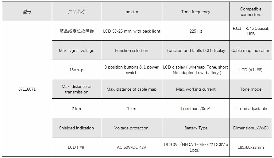 液晶显示器(线图,音调,短,无适配器,低) 电池)