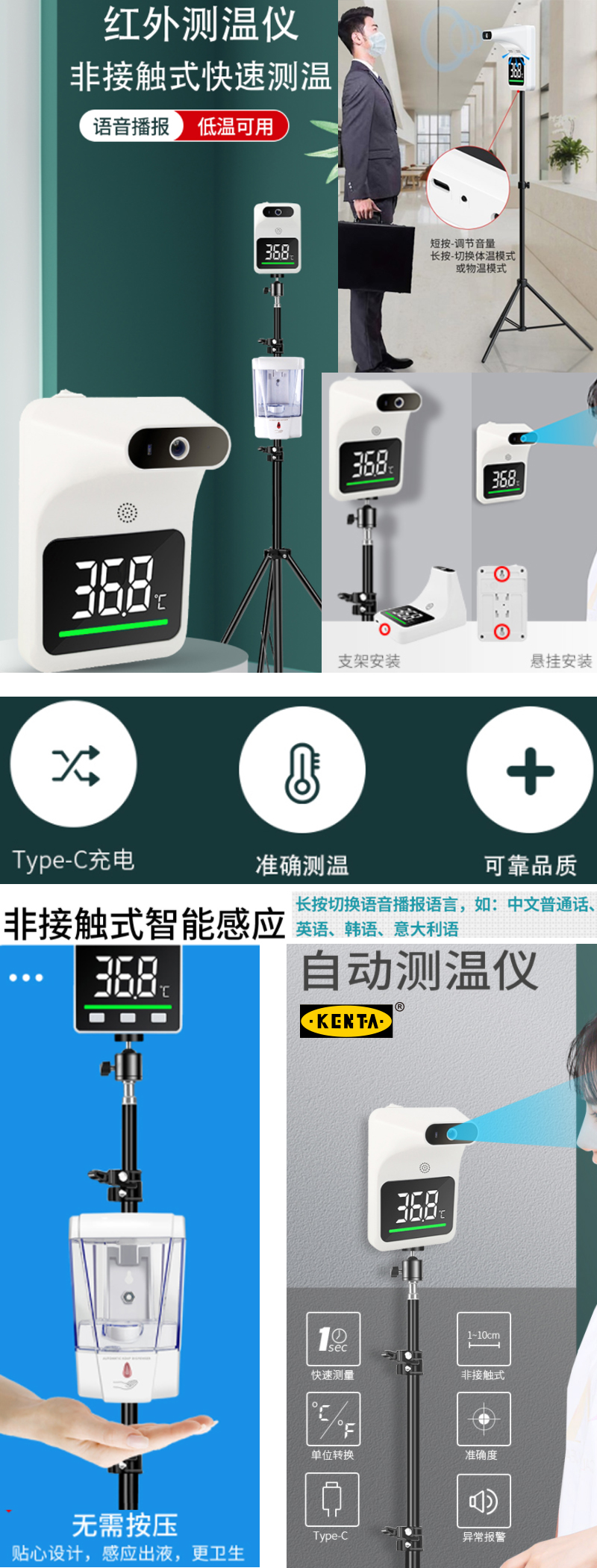 红外线测温仪自动高精度数显语音门口进入商场非接触式温度计体温计三脚架