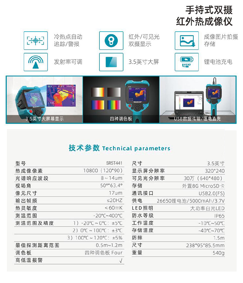 ·彩屏显示 ·30万高清像素 ·冷热点自动追踪