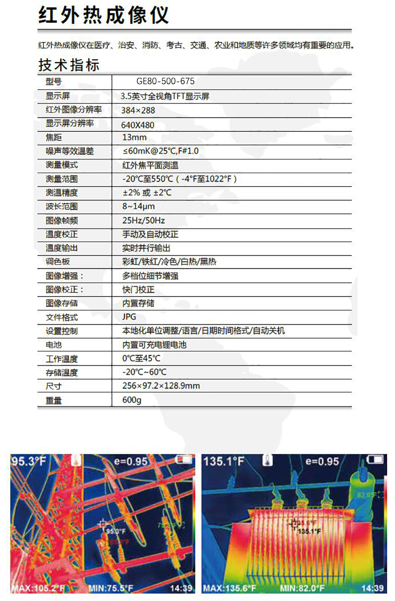 J155055 GE80-500-675 -20℃~550℃(-4°F-1022°F) ±2%,±2℃ 640×480 红外焦平面测温 37479.48