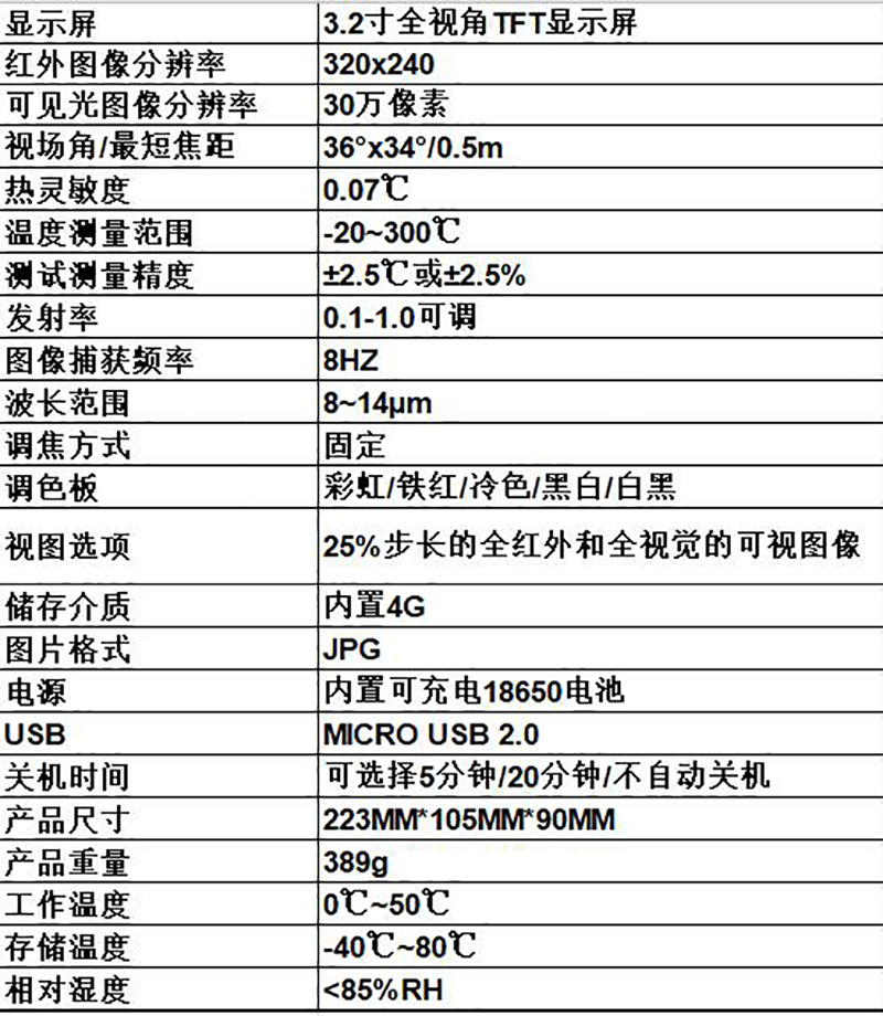 ·25%步长的全红外和全视觉的可视图像 ·3.2寸全视角TFT显示屏