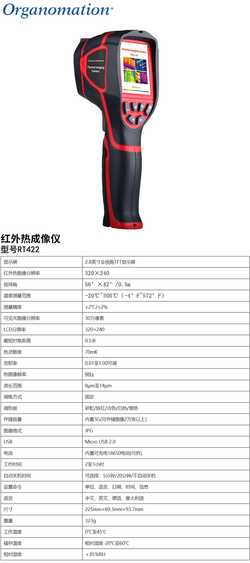 温度测量范围:-20℃~450℃(-4℉~842℉)