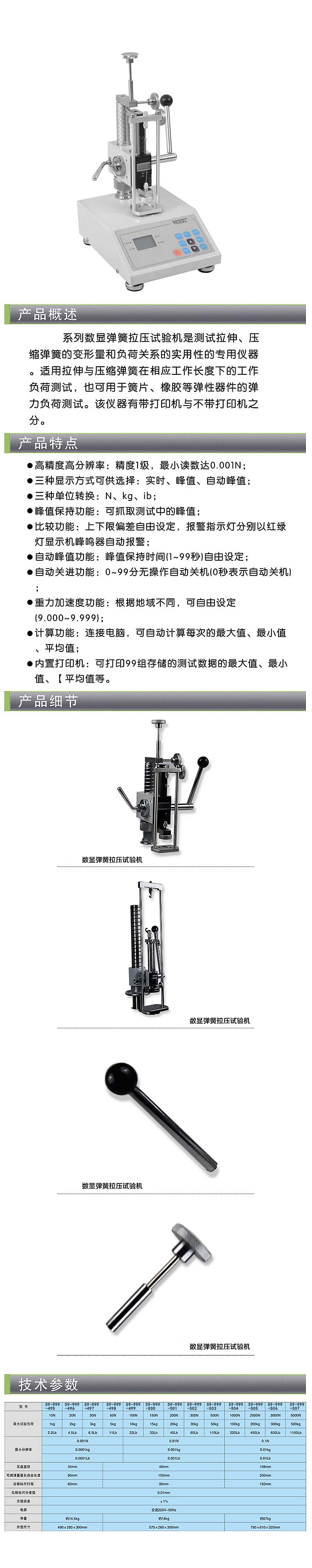 ·中文液晶显示三种单位可选择相互换算实时峰值自动峰值带打印功能
