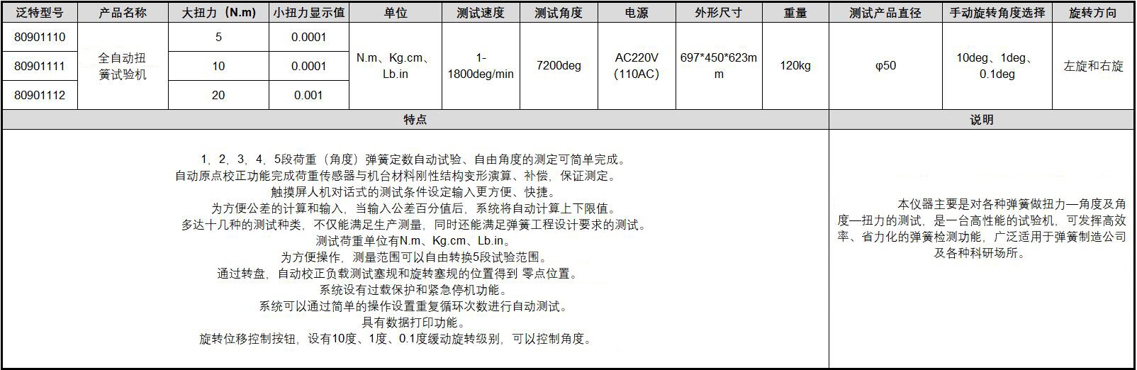·全自动扭簧试验机是依据国标JB/T7796-2005规定的技术要求制成。 ·本仪器主要是对各种弹簧做扭力—角度及角度—扭力的测试,是一台高性能的试验机,可发挥高效率、省力化的弹簧检测功能。