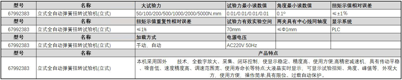 ·本机采用国外先进技术,全数字放大、采集、闭环控制,使显示稳定、精度高、使用方便; ·高精密减速机,具有传动平稳、噪音低、速度精度高、调速范围宽、使用寿命长等特点; ·大液晶实时显示,可显示试验扭矩、角度、峰值等,外观大方,使用方便,操作简单; ·具有限位、过载自动保护。