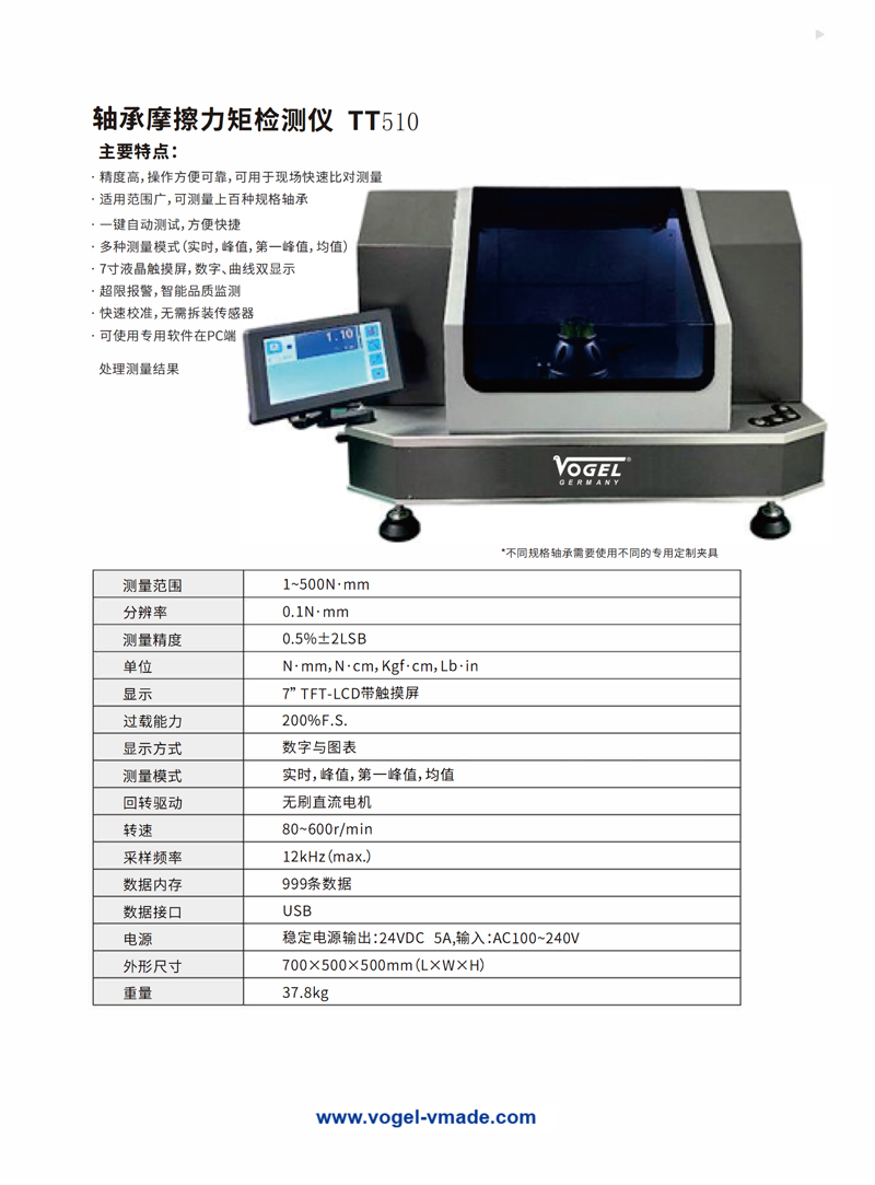 .精度高,操作方便可靠,可用千现场快速比对测量.适用范围广,可测量上百种规格轴承· —键自动测试,方便快捷.多种测量模式(实时,峰值,第一 峰值,均值). 7寸液晶触摸屏,数字、曲线双显示.超哏报警,智能品质监测.快速校准,无需拆装传感器.可使用专用软件在PC端处理测量结果