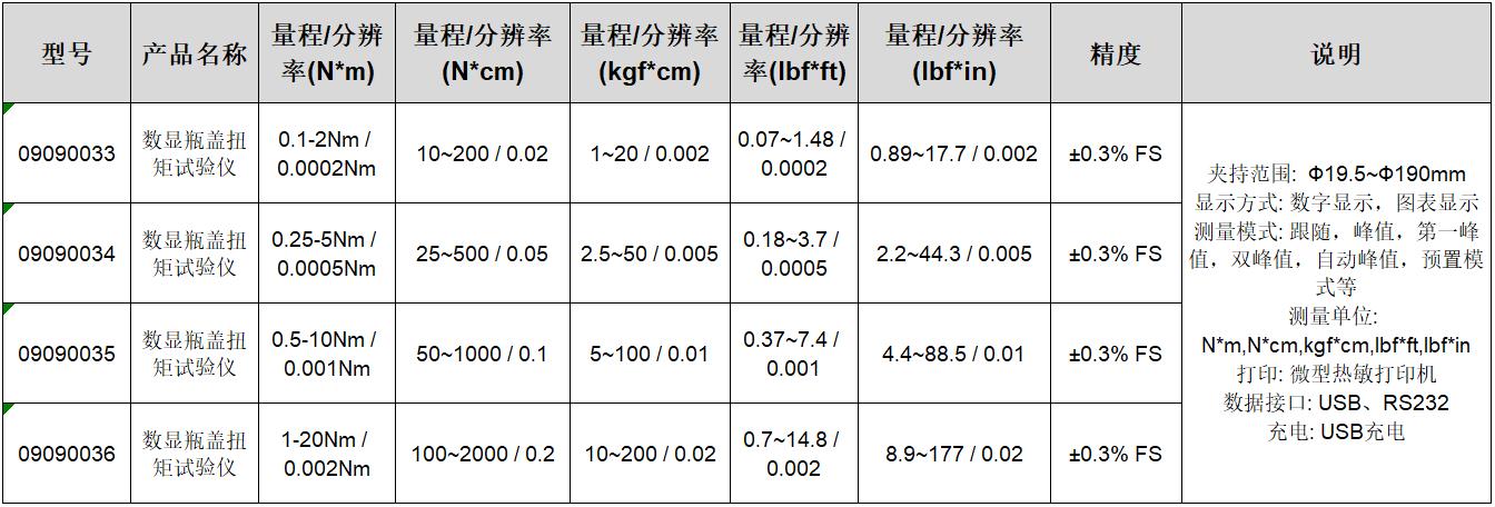 订货号 制造商型号 功能 量程/分辨率(N×m) 量程/分辨率(N×cm) 量程/分辨率(kgf×cm) 量程/分辨率(lbf×ft) 量程/分辨率(lbf×in) 精度 价格 购物车