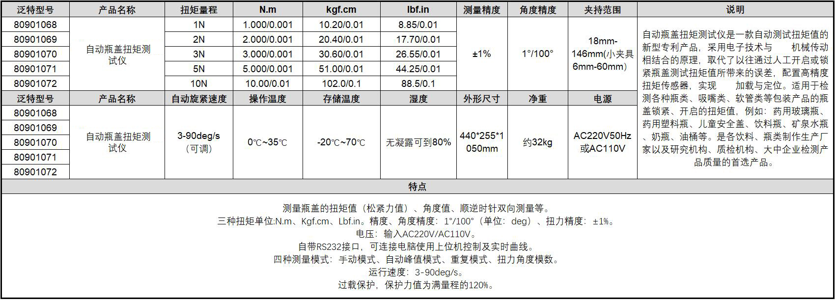 ·自动瓶盖扭矩测试仪是一款自动测试扭矩值的新型专利产品,采用先进电子技术与精准机械传动相结合的原理,取代了以往通过人工开启或锁紧瓶盖测试扭矩值所带来的误差,符合国家标准GB/T17876规定的技术要求。