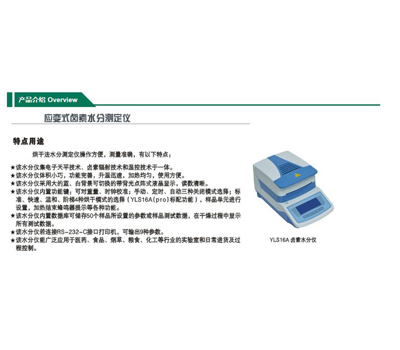 ·该水分仪体积小巧,功能完善,升温迅速,加热均匀,使用方便。